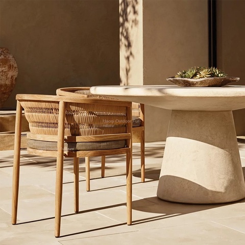 Modern Outdoor Teak Solid Wood Villa Courtyard Table and Chair Set with Cushion