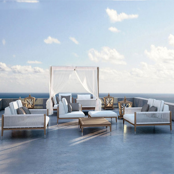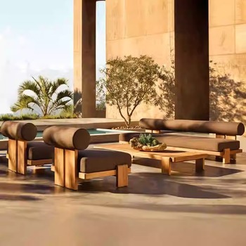Conjunto de sofá teca ao ar livre estilo moderno Villa Pátio Lazer Terraço Jardim ao ar livre Mobília do hotel de madeira maciça